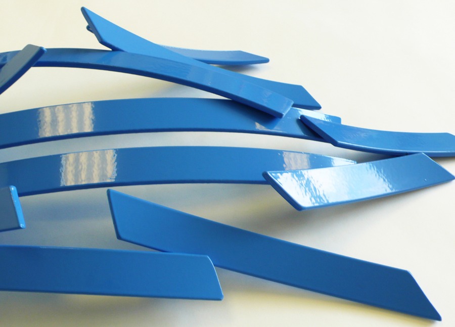 This piece has been powder-coated blue. This gives it a modern, contemporary feel, and a look that is quite different from most other Elements sculptures